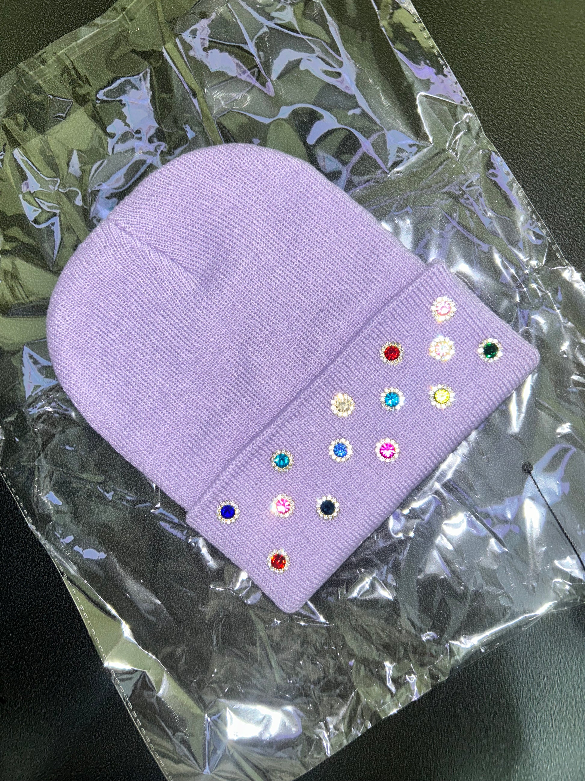 Step into a world of color with the Cosmic Candy – Grape Orbit beanie. This deep purple beauty combines warmth and statement style, featuring a hand-embellished cuff of multi-color rhinestones that glimmer like cosmic candy under the light. It’s the perfect mix of cozy comfort and luxury streetwear energy — made to stand out, shine bright, and complete any fit with confidence.