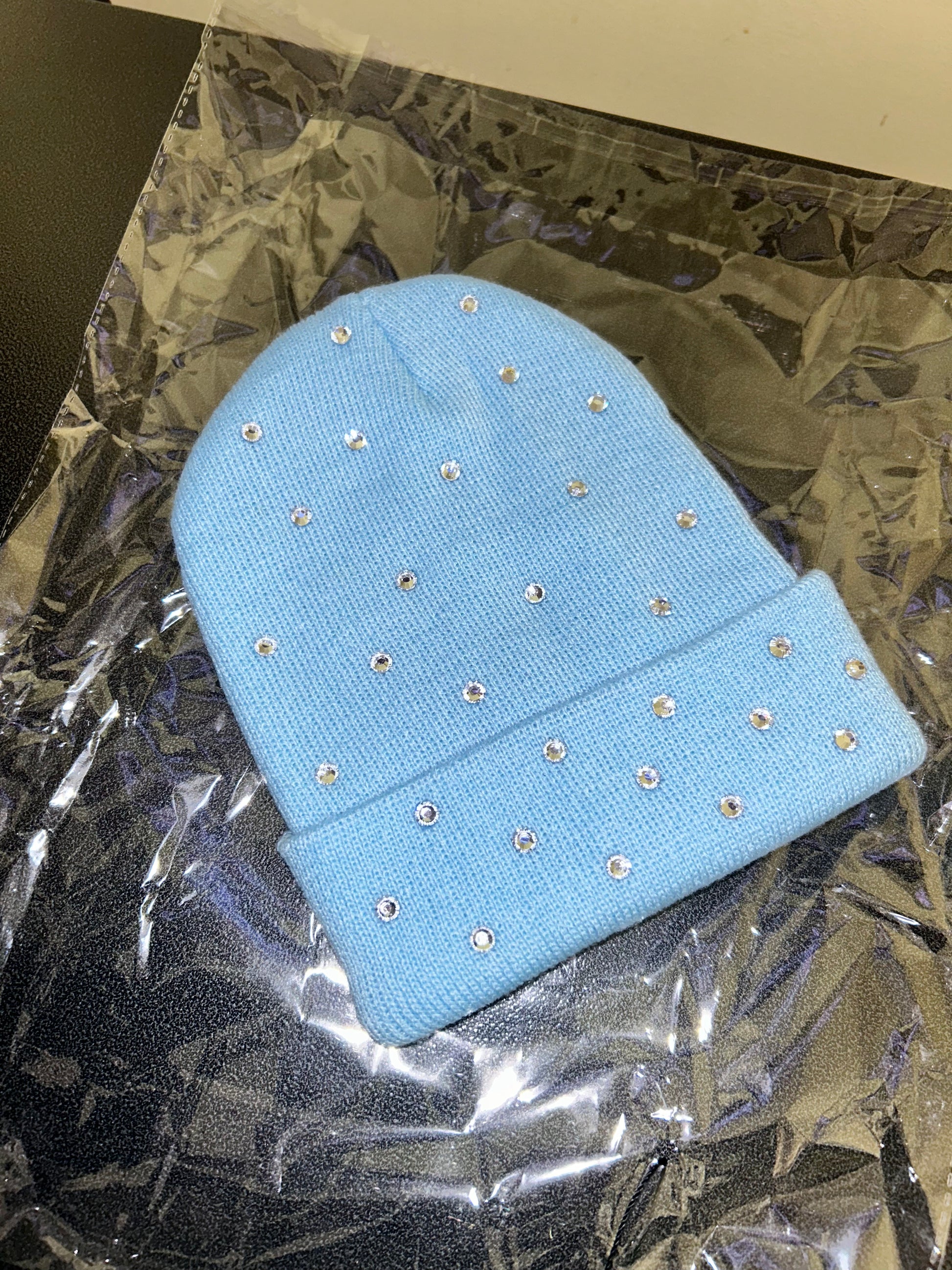 Meet Crystal Blue, a soft sky-blue knit beanie kissed with hand-placed rhinestones for the perfect winter sparkle. Designed to be clean, elegant, and effortlessly eye-catching, this one-of-one piece brings a subtle drip to any fit.