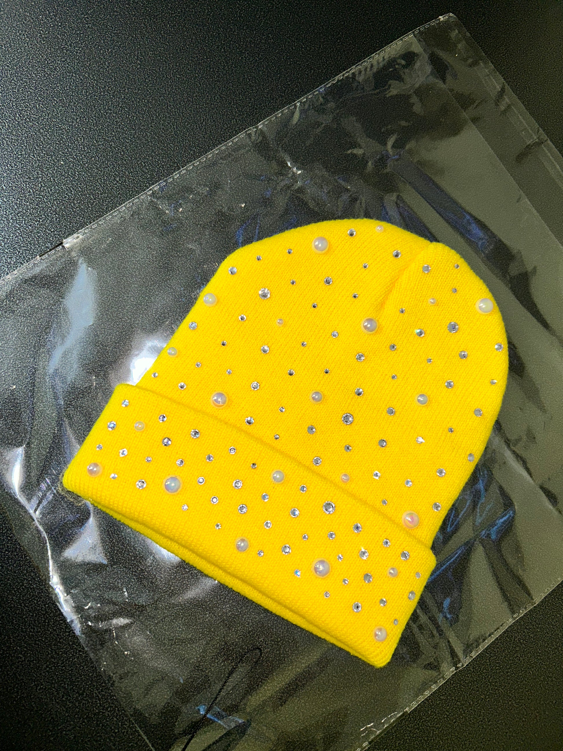 Honey Radiance embodies warmth, glow, and quiet luxury. Hand-designed with AB beige pearls and radiant rhinestones, this golden beanie reflects light beautifully for a soft, luminous finish. Each piece is one of a kind, crafted to elevate your style while staying true to individuality and self-expression