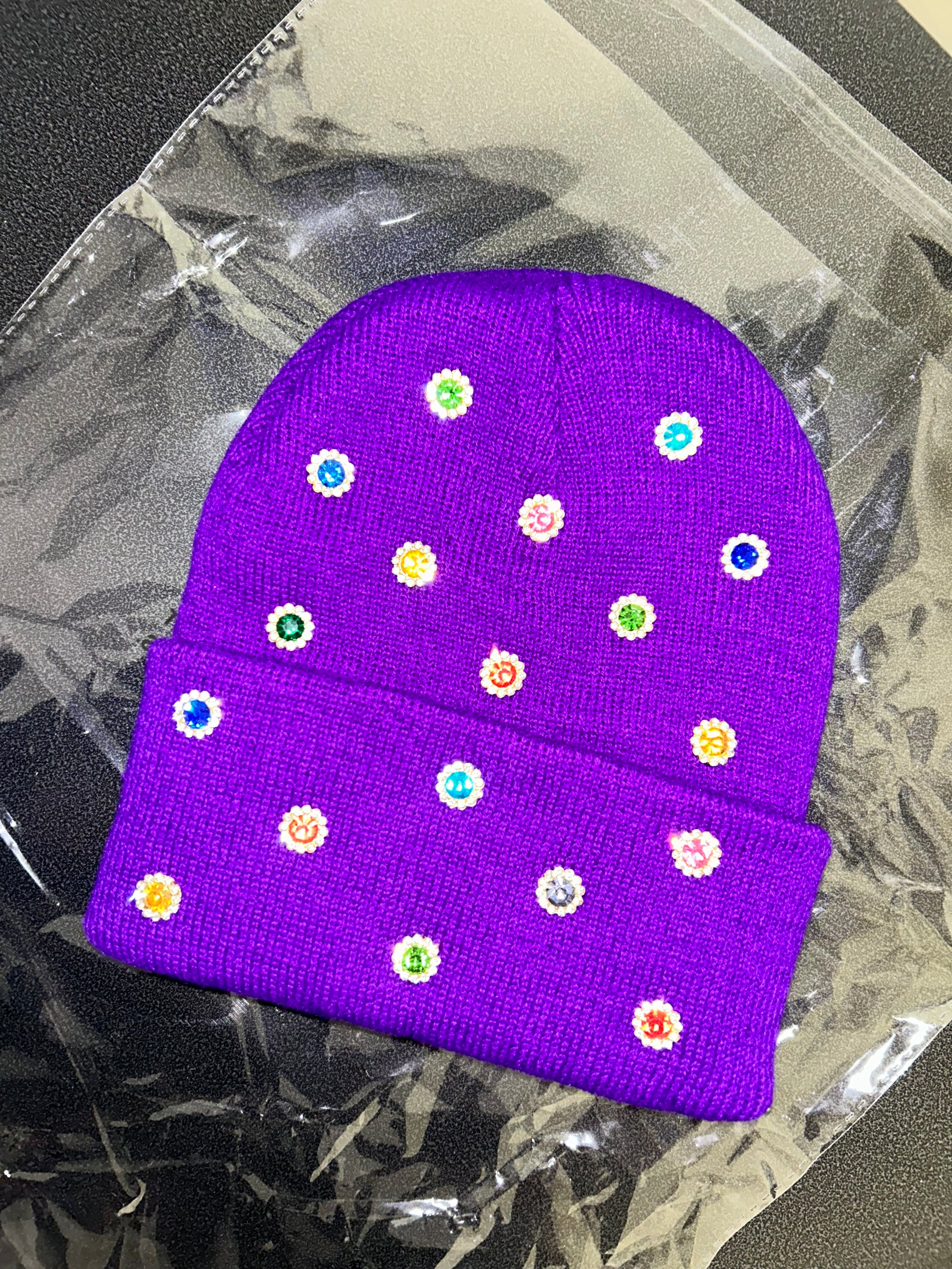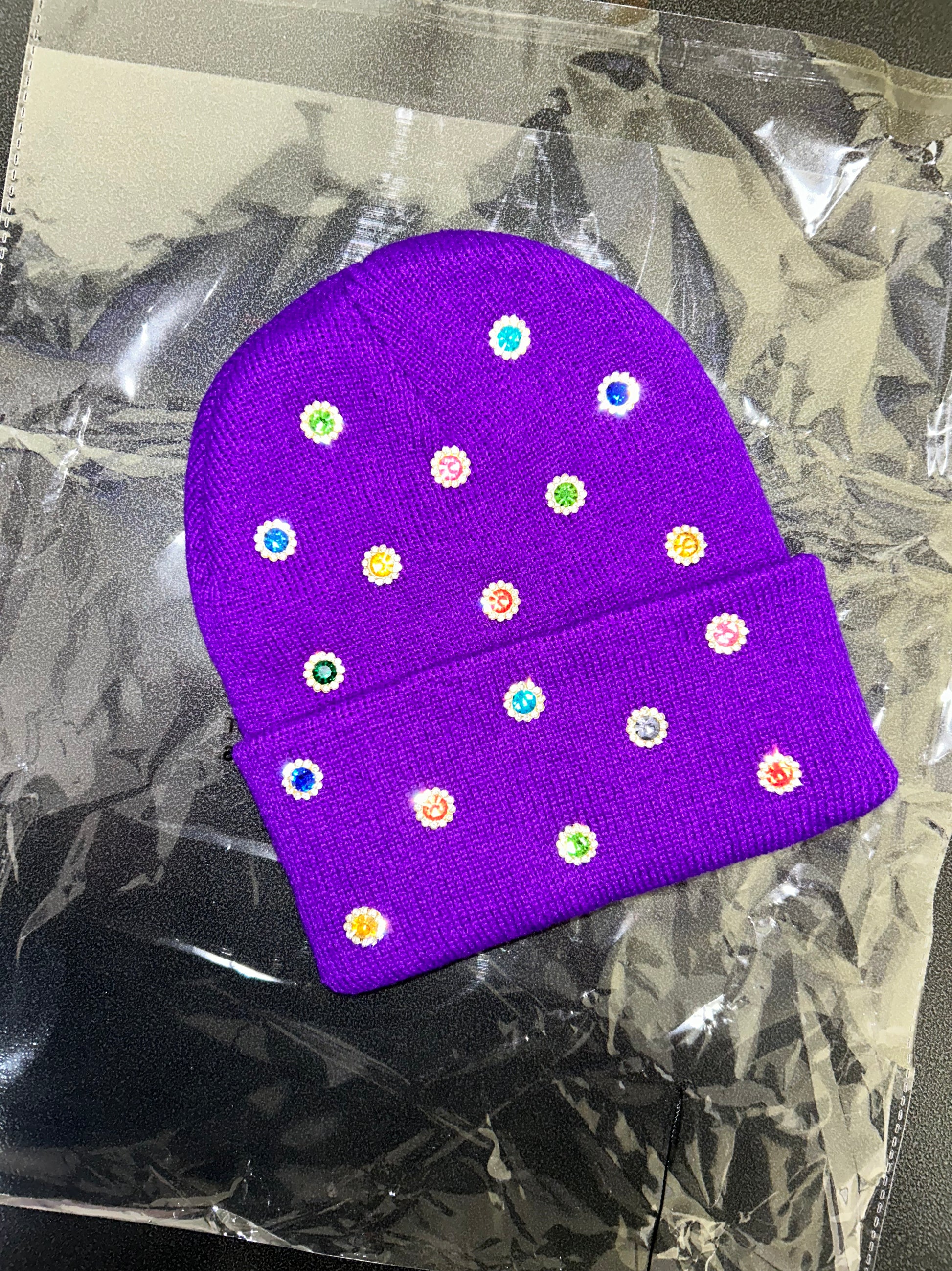 Designed for those who don’t shy away from bold expression, this beanie brings fun, color, and shine into one statement accessory. Whether you’re dressing up a casual fit or adding flair to your winter look, Purple Candy Storm delivers major drip.