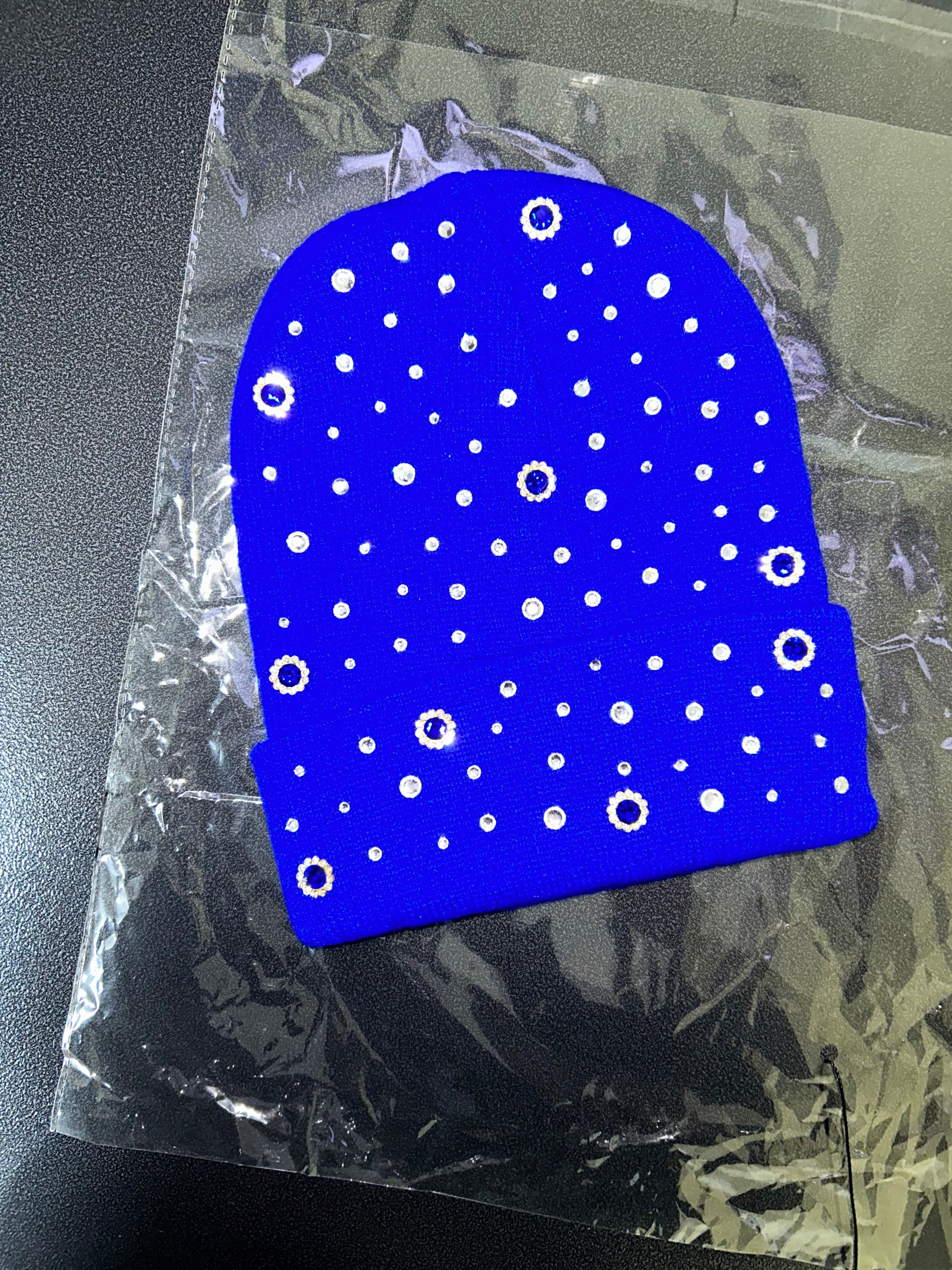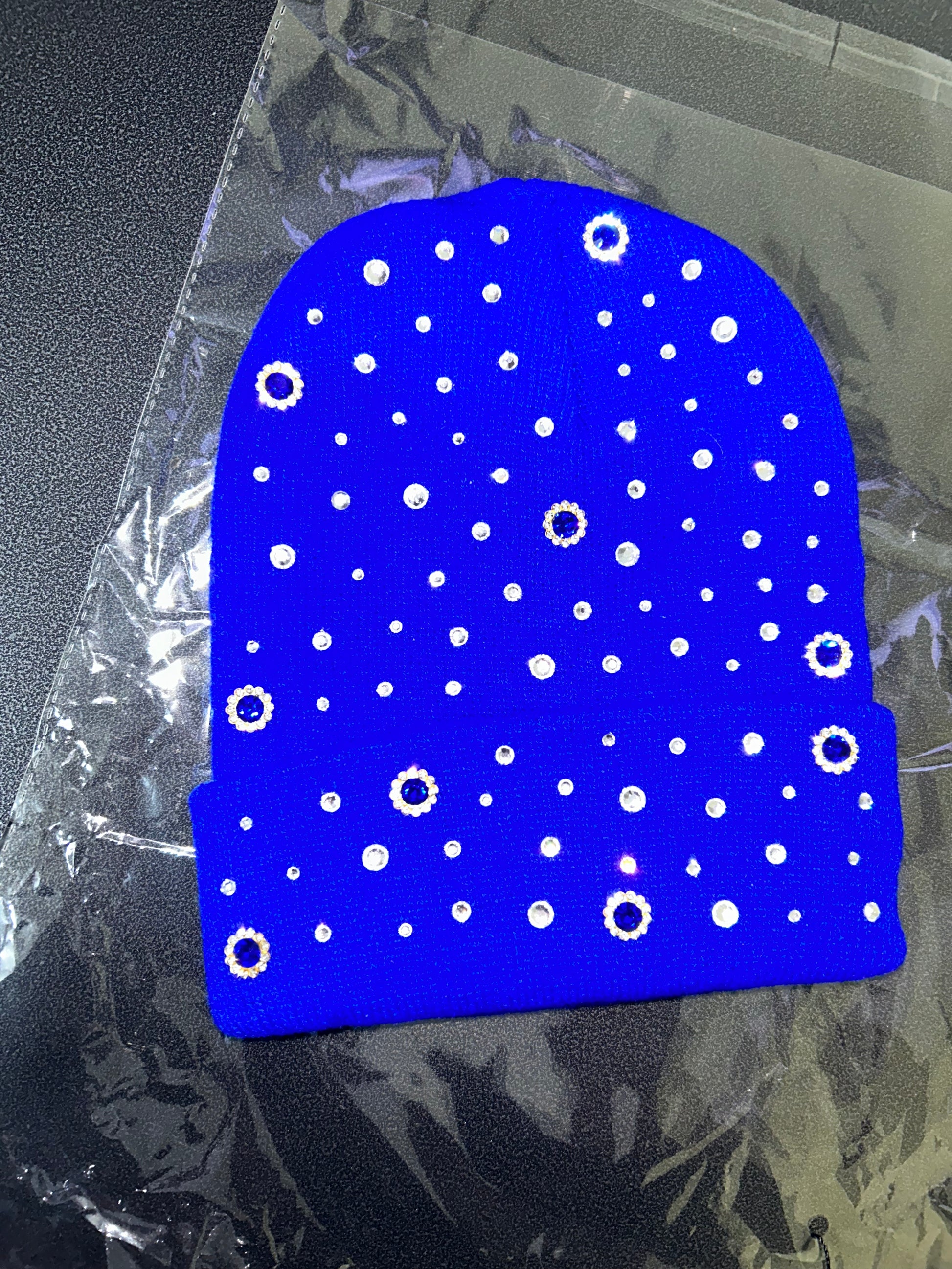 Designed on a deep royal blue beanie and finished with carefully placed rhinestones, this piece captures the beauty of a galaxy scattered with light. Every detail reflects confidence, individuality, and luxury without trying too hard.